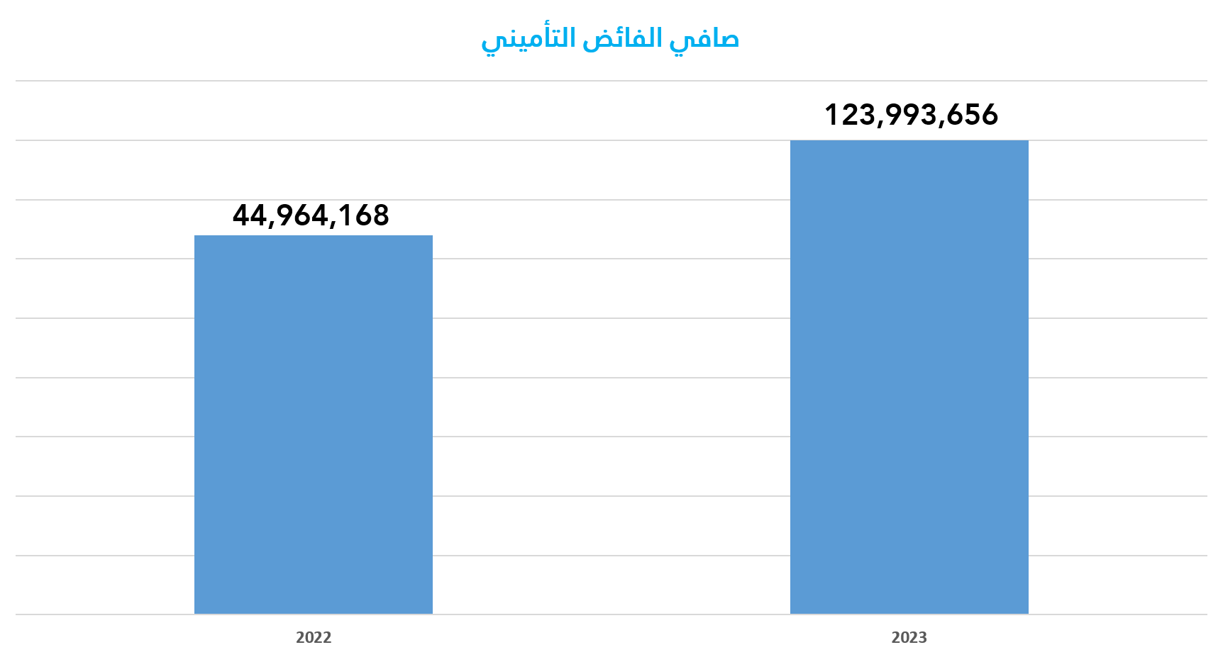 بلغ صافي الفائض التأميني للعام 2023 مبلغ 123,993,656 جنية ، و يمثل نسبة %17.4 من الإكتتاب، مقارنة بمبلغ 44,964,168 جنية في العام 2022 بنسبة %29 من الإكتتاب كما موضح بالجدول ادناه: