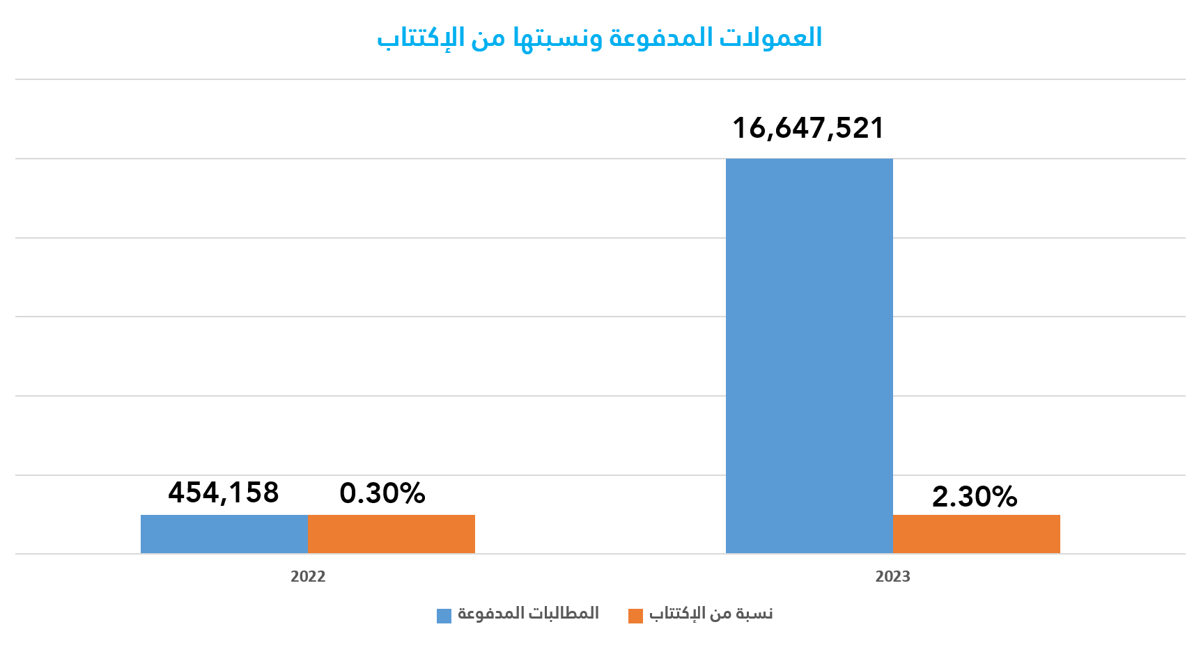 بلغت العمولات المدفوعة خلال العام 2023 مبلغ 16,647,521 جنية، و نسبتها من الإكتتاب %2.3 كما موضحة بالجدول ادناه: